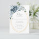 Diese eleganten, blauen RSVP-Karten mit Menüoptionen sind mit einem Blumenstrauß in Aquarellfarben ausgestattet, das ein zartes ovales Imitat mit goldfarbenem Rahmen schmückt, das auf der Rückseite mit einer staubblauen Aquarellstruktur versehen ist. Finden Sie passende Produkte in der Kollektion, oder schreiben Sie mir über den Zazzle Chat für noch mehr passende Produkte oder Designs.