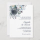 Elegantes, handgemäldetes Bouquet in Aquarellfarben in staubblauen, marinierten und hellen Pastellfarben; Rose, Grünflächen, Zweige. Easy DIY (do it yourself) bearbeitbare Vorlage Hochzeitskarten; perfekt für preiswerte Hochzeiten - hochwertige Einladungen, aber günstig, preiswert, günstig. Fügen Sie die Namen der Eltern hinzu. Zurück hat Braut und Bräutigam Monogramme. Design für jedes Jahr geeignet. In der 'CAMILA' Auflistung finden Sie passende Artikel.