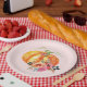 Wasserfarben-Blume-Pumpkettenplatte mit rosa Hintergrund