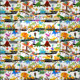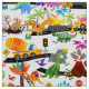 Wasserfarben Dinosaurierbau Kinder Niedliches Muster. Fun Dinosaurier machen Roadwork.
