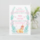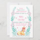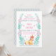Wasserfarbe Einhorn Blütendusche Einladung. Es kommt mit einem koordinierenden blauen und rosa Zickzack Streifen gemusterten Hintergrund für die Rückseite.