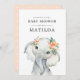 Wasserfarbene Elefant Babydusche Party Einladung. Mit zarten pinkfarbenen und weißen Polka Punkt Details. Teil einer Sammlung.