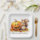 Wasserfarben-Herbsthörnchen mit Jack-o-Laterne Pappteller