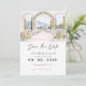 Set Sie den Ton für Ihren besonderen Tag mit diesem eleganten Watercolor Veranstaltungsort Wedding Save the Date. Dieses Design mit einer wunderschön illustrierten Aquarelldarstellung Ihres Hochzeitsortes verbindet zeitlose Kunst mit persönlicher Touch. Die sanften Pinselstriche und die zarte Farbpalette schaffen eine romantische und einladende Ästhetik, die perfekt das Wesen Ihrer bevorstehenden Feier einfängt.