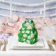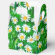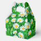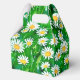 Gefältelbox in einem Aquarellmuster von weißen Molsen mit goldgelben Mittelpunkten auf grasgrünem Hintergrund