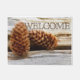 Diese Türmatte zeigt ein digitales Foto, das in eine Wasserfarbe von zwei Kieferntönen gegen verwittertes Holz umgewandelt wurde. Füllen Sie das Vorlagenfeld mit Ihrem Namen aus, löschen Sie den Text oder klicken Sie auf Anpassen, um eine Schriftart-Farbe, Stil und Größe, die Sie bevorzugen, auszuwählen. Sie können das Design auch auf andere Produkte in der Transferrolle übertragen. Original Foto ©Patricia AZ Phillips.