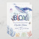 Herzlich willkommen an Bord, um die bevorstehende Ankunft eines kleinen Seemanns zu feiern! Diese charmante Watercolor Nautical Adventure Baby Shower Einladung ist perfekt, um zu verkünden, dass "Es ist ein Junge!" Es ist zum Thema Wassersport konzipiert und verfügt über einen hübsch bemalten Wal, der direkt vor dem Hotel schwimmt und von zauberhaften kleinen Fischen, Quallen, Korallenriffen, einem Anker und dem ruhigen Meer umgeben ist. Die Farbpalette dieser Einladung spiegelt den fröhlichen Geist der Ankunft eines Babys wider. Die Bühne ist in verschiedenen Blautönen gehalten, was ein Gefühl der Ruhe und des großen Ozeans hervorruft. Die Touchs Bordeaux, Grün und Braun sorgen für Wärme und Tiefe und sorgen für eine harmonische und auffällige Komposition. Jedes Detail dieser Einladung wurde sorgfältig erstellt, um das Wesen eines ozeanischen Abenteuers zu erfassen. Der handbemalte Wal bringt eine Touch von Whimsy, während die niedlichen Fische, Quallen und Korallenriffe eine lebendige Unterwasserszene schaffen. Der Anker symbolisiert Kraft und Stabilität, während die sanften Wellen des Wassers eine beruhigende Kulisse bieten. Mit seinem charmanten Wasserthema und der farbenfrohen Farbkombination wird diese Watercolor Nautical Adventure Baby Shower Einladung den Ton für ein unvergessliches und fröhliches Fest Set. Egal ob Sie eine Ansammlung am Strand veranstalten oder einfach nur eine maritime Touch zu Ihrer Veranstaltung gewollt haben, diese Einladung verlasse Ihren Gästen einen bleibenden Eindruck.