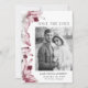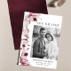 Mit unserer stilvollen und modernen Foto Save the Date-Karte verkünden Sie Ihr Hochzeitstag. Das Design besteht aus einem Rahmen von bemalten Aquarellkristallen in den Schattierungen Wein und Bordeaux. "Save the Date" wird in einem modernen schwarzen Serif-Schriftart angezeigt. Personalisieren Sie die einzigartige Save the Date-Karte, indem Sie Ihr Foto, Ihre Namen, Ihr Hochzeitstag und Ihren Hochzeitsort hinzufügen. Die Karte kehrt um, um einen schönen bordeauxfarbenen Hintergrund anzuzeigen.
