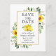 Modern Watercolor Eukalyptus Greenery Lemons Sonnenblumen Goldrahmen Save the Date Verlobung Ankündigung Postkarte