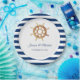 Navy blaue Streifen und Aquarelllenkrad schaffen einen klassischen nautischen Look, ideal für elegante Hochzeiten oder Hochzeiten am Strand. Moderne und elegante Schriftart-Kombination.