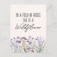 In trendigen Schriftart präsentiert sich unsere Watercolor Lila Wildblume Meadow Quote Post Card mit einem Lavendelfeld und dem a text "in einem Feld von Rose ist sie eine Wildblume". Ideal für Wildblumen- und Bohypatiker.