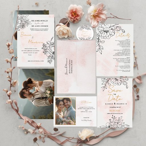 Blush & Black Floral Elegance Wedding SuiteDesignt von Paola Garcia Broeders