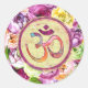 Wasserfarben-OM-Symbol mit Blume Runder Aufkleber