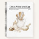 Stilvolles Rezept-Notizbuch mit einem hübschen rustikalen Aquarellbild einer Keramik Wasserpfeife gefüllt mit Küchengeräten und umgeben von Backzutaten wie Eiern und Mehl. Kann angepasst werden.