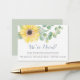 Eine süße Wasserfarbe bewegende Ankündigungskarte, die Freunde und Familie über Ihre neue Zuhause Sweet Zuhause lasse! Dieses einfache Design zeichnet sich durch eine charmante Sonnenblume und Eukalyptusgrün aus, die in meiner originalen handgemalten Aquarellkunst mit "We've Moved" in handgeschriebener Schriftzypografie zu sehen sind. Fügen Sie mithilfe der Vorlagenfelder benutzerdefinierte Informationen, neue Adressen und Namen hinzu. Eine schicke und doch süße Wahl, um Freunden und Familie die neue Zuhause bekannt zu geben. Designed by Victoria. Weitere Informationen unter www.zazzle.com/vginvites