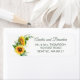 Wasserfarbe Sonnenblumen Rustikale Hochzeitadresse Etikett. Der romantische Stil mit Sonnenblumen, Eukalyptus und Grün ist perfekt für eine rustikale Hochzeit im Sommer. Gelbe Sonnenblumen-Blume werden Ihre Hochzeit mit Sonnenschein füllen. Der Aquarell-Spritzer ergänzt die Komposition und verleiht ihr einen besonderen Charme.