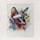 Wasserfarben-Sphynx-Katze Künstliches Portrait Puzzle