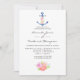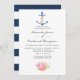 Trendy Marine und Probe mit weißem Wassersport-Thema Einladungen mit einem Aquarell Blumenanker, Blume und Marinestreifen auf der Rückseite.