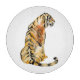 Sitzen Tiger I von Jennifer Goldberger. Ein Tiger im Aquarellstil, der durch das Sitzen locker Posen macht. | 163738Z