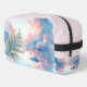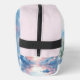 Ein moderner Accessoires-Beutel ist mit einem von der Natur inspirierten tropischen Thema geschmückt, das mit einem Aquarell von blauen, rosa und weißen flauschigen Wolken geschmückt ist. Es wird durch eine fließende, grüne Farnfront sowohl vorne als auch hinten betont. Fügen Sie Ihre Initialen oder Namen nach Wunsch hinzu.