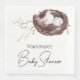 Diese individuell gestalteten Babyduschen zeichnen sich durch ein elegantes, wasserfarbenes Design aus. Das Bild zeigt ein malerisches Vogelnest, das auf den Zweigen eines Baumes steht. Eine süße Mama beobachtet im Vogelnest ihre Eier. Der Titel "Baby Shower" wird in einem eleganten Script-Schriftart gedruckt. Ein Beispielname wird darüber gedruckt, mit dem Sie Ihren eigenen individuelle Name oder einen anderen Text personalisieren können.