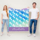 Diese Fleecedecke ist skurril und niedlich mit einem weißen Einhorn-Silhouette-Muster über einer Regenbogenwäsche von Aquarellfarben mit Ihrem individuelle Name in weißer Schrift am unteren Rand.