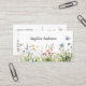 Weibliche und saubere weiße Wasserfarbe Wildblume Wiese Business Card. Die Vorderseite hat das Design einer Wildblumen Wiese und Schmetterlinge mit dem Namen der Raubtiere. Die Rückseite hat alle wesentlichen Elemente einer Visitenkarte: Name, Titel/Firmenname, Adresse, Arbeitstisch, E-Mail und Handy. Die Rückseite eines kleinen Wildblumen-Bouquets und einer Libelle. Einfach mit Ihrem Namen und Text anpassbar. Dieses Aquarell Wildblumen Design kommt auf verschiedene Produkte, perfekt für Sie, die andere Produkte benötigen und ein zusammenhängendes Design auf Ihre Werbeprodukte wollen. Mischung und Übereinstimmung Es sieht beeindruckend aus und gibt Ihrem Unternehmen eine weibliche Touch.