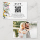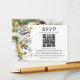 Moderne Minimalistische Simple Watercolor-Wildblumen Hochzeit-RSVP-Karte mit QR-Code beinhalten gelbe, rosa, lila, staubblaue und weiße Blume, Eukalyptus-Blätter, Salbei-grüne Blätter und andere botanische Pflanzen. Foto zurück.