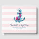 Nautisches Gästebuchdesign mit Anker mit Blume auf rosa Streifen Hintergrund.