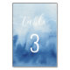 Wasserfarbenblaue Hochzeit. Modernes Drehbuch Tischnummer