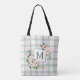 Dieser monogramm Totbeutel ist mit lackierten Aquarellfarben-Blume in Rosa, Weiß und Grün auf einem pastellfarbenen, karierten Muster-Hintergrund versehen. Für eine weiter gehende Anpassung dieses Designs klicken Sie bitte auf den Button "Anpassen". Matching-Elemente sind ebenfalls verfügbar.