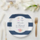 Trendy nautische Hochzeitszettel Teller mit floralen Ankern, Blume und Marinestreifen.