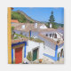 Aquarell mediterranes Dorf mit weißen Häusern und roten Fliesen mit Blick auf die Straße in Portugal