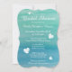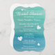 Wasserfarbene Braun-Dusche zum Thema Strand. Aqua / türkisblaues Wasser Farbe Design mit wenig Vintage verwitterte Herzen. Eine schöne Hochzeitsfeier lädt die Gäste ein. Personalisierbare Vorlage mit Namen, Datum und Adresse der Braut. Sommer Ziel Malerei.