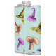 Wasserfarbene alte Hüte: blauer Hintergrund. Flachmann