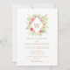 Aquareller Frühlingsauftakt Einladung mit Ihrem neuen Nachnamen Erstmals im Kranz - eine Aquarellmalerei Blumendetails Hochzeitseinladung Design mit Blume verzieren den Aquarellkranz. Gute und helle Frühlingsfarben für eine Hochzeit im Sommer oder Frühjahr.