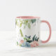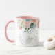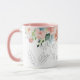 Trendy schicke botanische Aquarellkaffee-Tasse mit Blumensträußen aus Schieferblau und Rosa-Rosa-Rose mit grünen Blätter und Blattwerk, von Hand gezeichnet Zweige, und eine elegante grüne Typografie Skript Monogramm / Name Initial. ++++++++++++++ Einfach mit Ihrem Buchstaben personalisieren! ++++++++++++ könnte ein hübsches Geschenk sein, das für Veranstaltungsplaner, Floristen, Landschaftsgestalter, Gartendesigner, Innenarchitekten, Boutiquen- und Ladenbesitzer, Schönheitssalonverwalter, Makeup-Künstler, Kosmetologen, Friseurinnen, Nageltechniker, Lifestyle-Blogger, persönliche Stylist geeignet ist!
