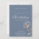 Eine handgemalte Aquarell-Blume auf einer schönen, modernen, vereinfachenden Geburtstagseinladung in Schieferblau. Für jedes Meilenstein-Geburtstagsfest anpassen