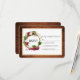 Die moderne elegante Watercolor Trauben and Vines Wood Wreath Wedding RSVP Card beinhaltet bordeauxfarbene Rose, rosa Rosen, rote Rosen und botanisches Grün. Rustikales Land Holz Hintergrund und Gold Rahmen.