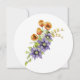Runde Hochzeitseinladung mit Aquarellorange-Tulpenkranz und Blattwerk.