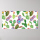 Wasserfarbene handgemalte tropische Kakteen. nahtl Poster