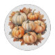 Schönes Aquarelldesign mit 6 Kürbissen und Herbstblättern in einem Kreis angeordnet. Ideal für Herbst, Erntedank und saisonale Zuhause.