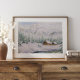 Wasserfarbene Holzhäuser und Pinienbäume im Schnee Poster