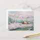 Wasserfarbene Holzhäuser und Pinienbäume im Schnee Postkarte