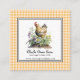 Die Watercolor Hühnerfarm Fresh Eggs Square Business Card - Eine großartige Möglichkeit, einen ersten und dauerhaften Eindruck zu machen. Unsere Visitenkartenvorlage beinhaltet Aquarellhühnchen mit Blume und einen gelben Gingham-Rahmen.