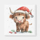 Aquarellkühe in Weihnachtsmannmütze Frohe Weihnachten. Feierliche Köstlichkeit für Ihren Urlaubstisch, mit diesem lustigen Design mit einer süßen Hochlandkuh in seiner Weihnachtsmannmütze.