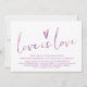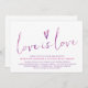 Eine Lieblings-Homosexuelle-Hochzeitseinladung mit den Worten "Liebe ist Liebe" Set in einer modernen Aquarell-Kalligraphie-Schrift und einem Aquarellherz und einer einfachen, sauberen Typografie auf weißem Hintergrund. Die Farbpalette der Purples & Pinks. Einfach und süß. Design von The Gepunktet Olive™.
