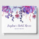 Dieses Brautparty Gästebuch bietet lila Aquarellbilder. Personalisieren Sie es mit dem Namen der Braut sowohl auf der vorderen Abdeckung als auch auf der Wirbelsäule. Dieses Gästebuch ist Teil einer Sammlung, die eine Reihe passender Produkte enthält. Besuchen Sie unseren Shop, um die komplette Produktpalette zu sehen, die Sie für Ihre Hochzeitsfeier personalisieren können.