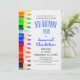 Dieses lustige Kindergeburtstag Party Einladung Design verfügt über eine Säule von Regenbogenfarben Stifte. Alle Party Details sind vorne mit blauer Schriftart Farbe für das Party und Namen Informationen. Füllen Sie die Textfelder der Vorlage unter Personalisieren aus, entfernen Sie alle Informationen oder klicken Sie auf Anpassen, um einen Schriftart auszuwählen, den Sie bevorzugen.