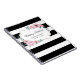 Elegantes, schwarz-weiß gestreiftes Blumenheft mit rosa Blume, die die Details der Hochzeit abrahmen. Dieses schwarz-weiße Hochzeitsnotiz kann einfach mit Ihrem Namen und Datum personalisiert werden. Andere Anwendungen sind möglich, indem Sie den Titel dieses schönen Blumenheftes ändern.